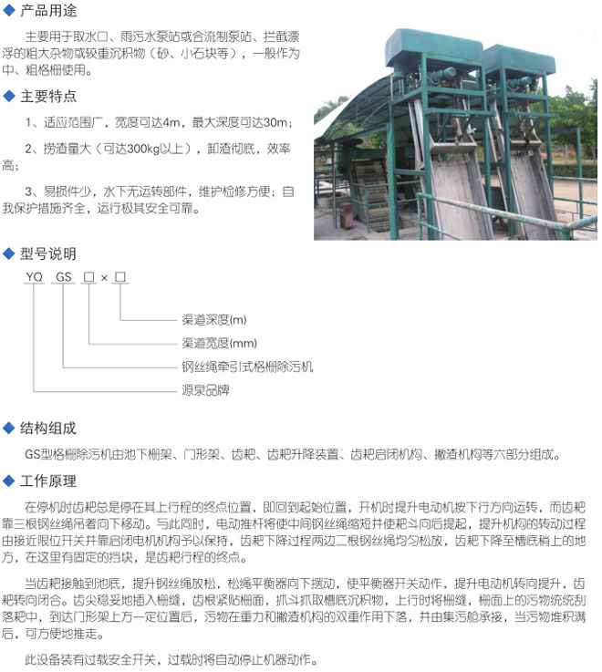GS型钢丝绳牵引式格栅除污机